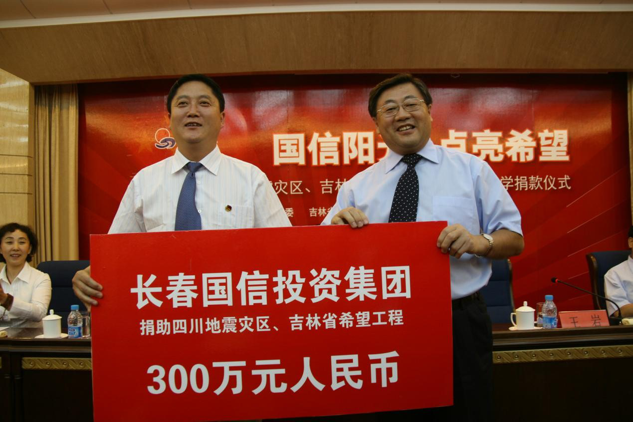 注:国信集团捐助四川地震灾区、吉林省希望工程仪式留影。