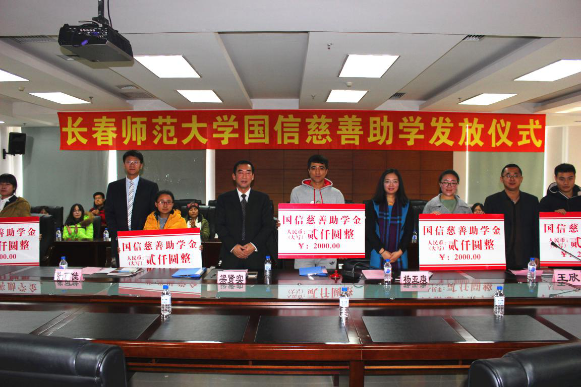 注:国信慈善基金会助学金发放仪式留影。